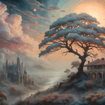 A luxurious, (((Magnified American Romanticism Style))), with intricate details and ornate patterns, a soft atmosphere created by whispering clouds that reveal a ((forgotten prophecy)), giving off an impressionistic, dreamy vibe. Elements are painted in oil pastels, lending a (((soft, ethereal glow))) that creates a misty, foggy image (Copyright ISHISH 2024 All rights Reserved)
