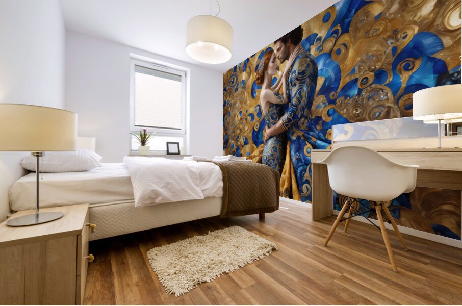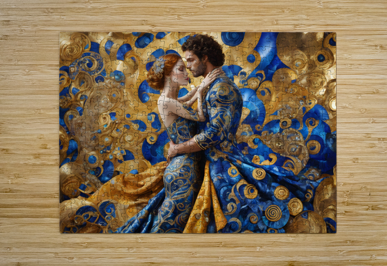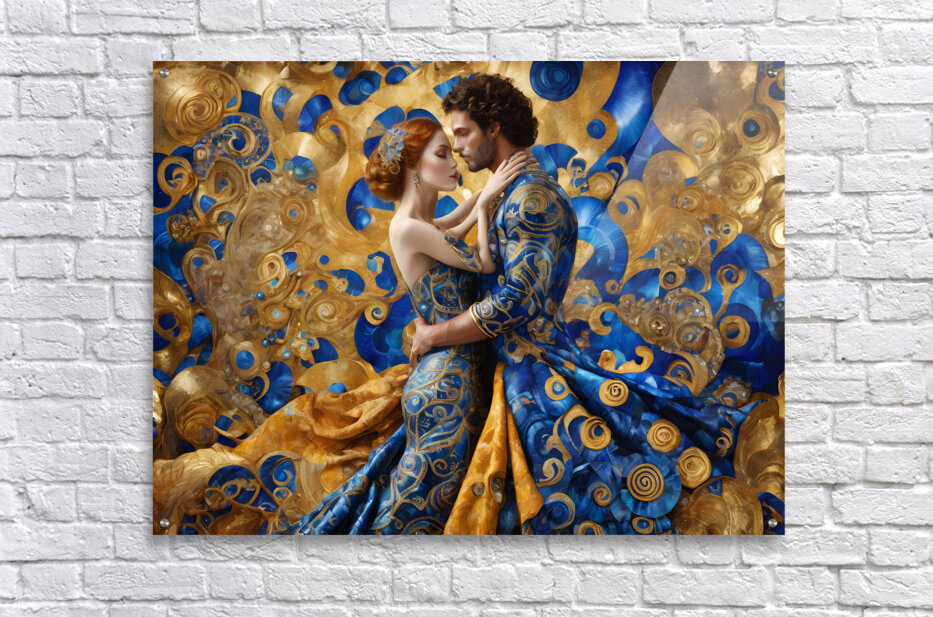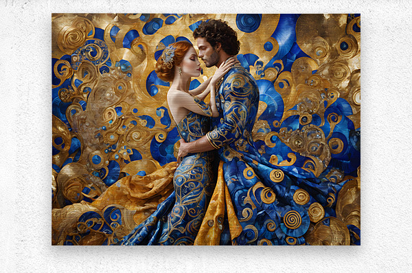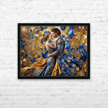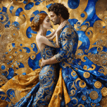 A (((Gustav Klimt-inspired husband and wife embrace))), with intricate details and flowing locks mirroring the artist's style, dressed in elaborat...[+]