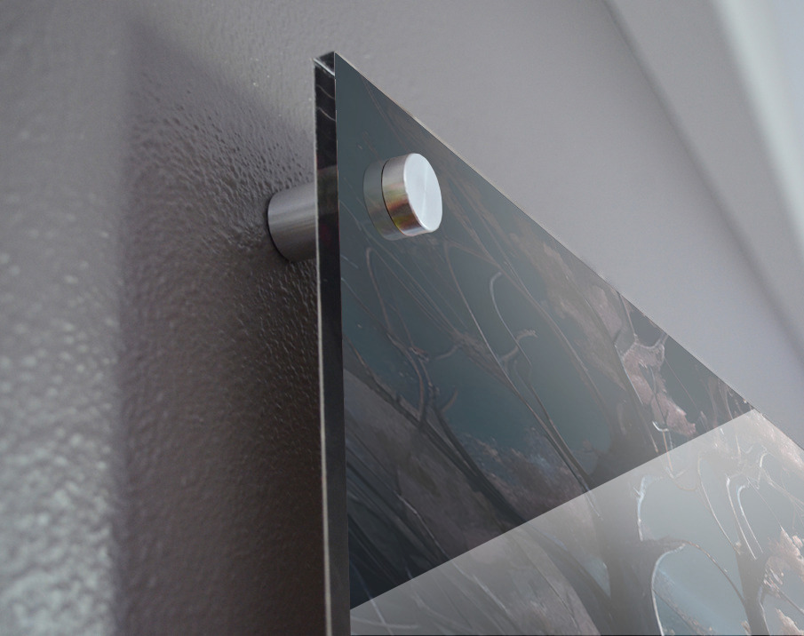 Printed to the edge - Ready to hang - provided with 4 premium polished aluminum stand off ( wall screws and mounting hardware provided ) We suggest a thicker 3/16" acrylic for any size over 42 inches to guarantee a straight acrylic, without curvature