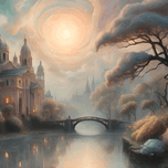 A luxurious, (((Magnified European Romanticism Style))), with intricate details and ornate patterns, a soft atmosphere created by whispering clouds that reveal a ((forgotten prophecy)), giving off an impressionistic, dreamy vibe. Elements are painted in oil pastels, lending a (((soft, ethereal glow))) that creates a misty, foggy image (Copyright ISHISH 2024 All rights Reserved)