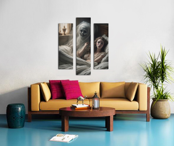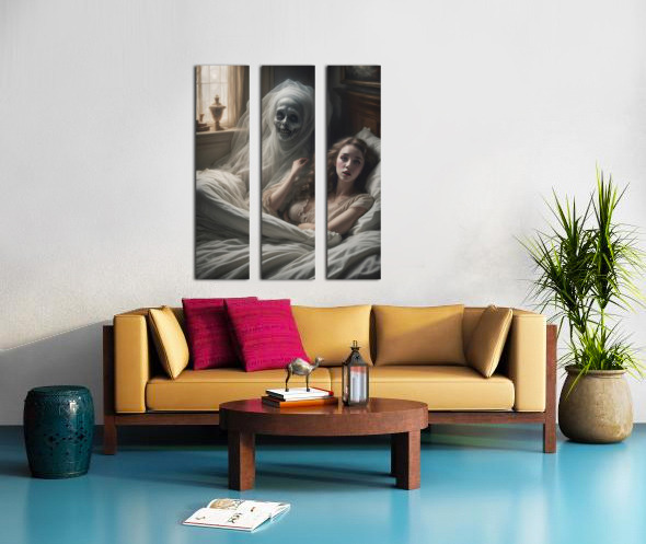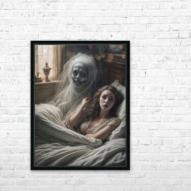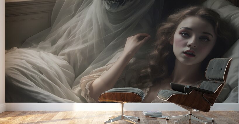 A spine-chilling scene in a classic Hitchcock mansion, where a (((super detailed face))) of a screaming woman lies trembling in a bed, surrounded by (an ethereal ghostly figure attempting to grasp her) and ominous (mist illusions) swirling around, while (hyper realistic, intricate details) like (interwoven eyebrows) and (sunken cheeks) contrast against the (archaic color palette) and unexpected (interpolations of Renaissance style ornamentation) that give the scene an unsettlingly surreal atmosphere. The whole scene exudes a (cinema scope aesthetic) with (hyper realistic, ultra detailed faces) and (surprisingly intricate details around the eyes) that convey a palpable sense of dread and anticipation, as if something truly sinister is about to unfold. This advanced prompt represents the epitome of advanced prompting, with its carefully advanced advanced prompting that goes beyond the initial prompt to create a truly breathtaking image that captures the essence of classic horrible horror Copyright ISHISH 2024 All rights Reserved)