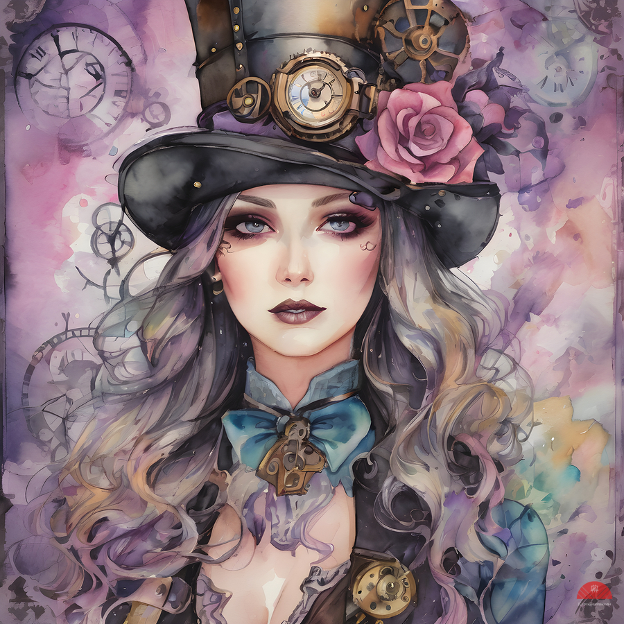 Illustrate (((lady dreamy mist pastel junk journals))), with intricate (((watercolor drawings))) featuring (((gothic steampunk motifs))), including a ...[+]