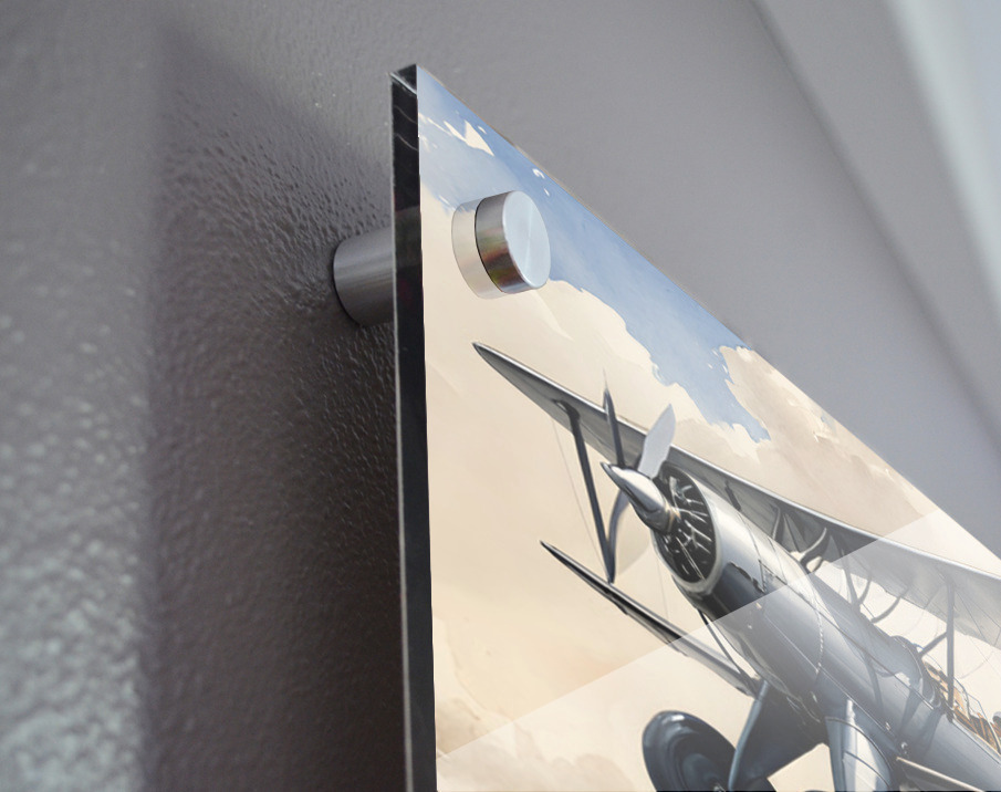 Printed to the edge - Ready to hang - provided with 4 premium polished aluminum stand off ( wall screws and mounting hardware provided )