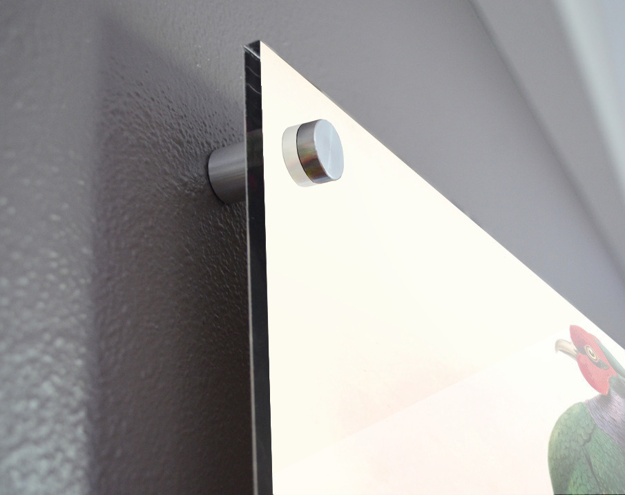 Printed to the edge - Ready to hang - provided with 4 premium polished aluminum stand off ( wall screws and mounting hardware provided ) We suggest a thicker 3/16" acrylic for any size over 42 inches to guarantee a straight acrylic, without curvature