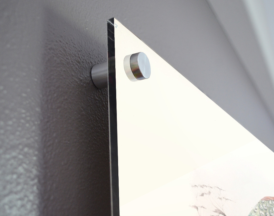 Printed to the edge - Ready to hang - provided with 4 premium polished aluminum stand off ( wall screws and mounting hardware provided ) We suggest a thicker 3/16" acrylic for any size over 42 inches to guarantee a straight acrylic, without curvature
