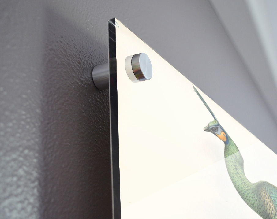 Printed to the edge - Ready to hang - provided with 4 premium polished aluminum stand off ( wall screws and mounting hardware provided ) We suggest a thicker 3/16" acrylic for any size over 42 inches to guarantee a straight acrylic, without curvature