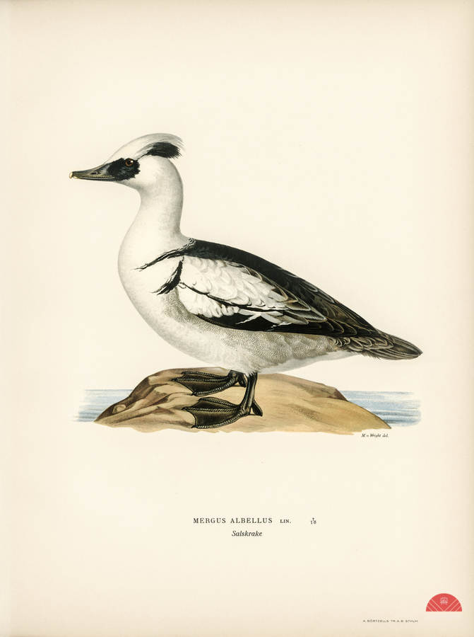 Mergellus albellus illustrated by Magnus von Wright 1905-1968. from 1929 folio version of Svenska Fåglar Efter Naturen Och Pa Sten Ritade.