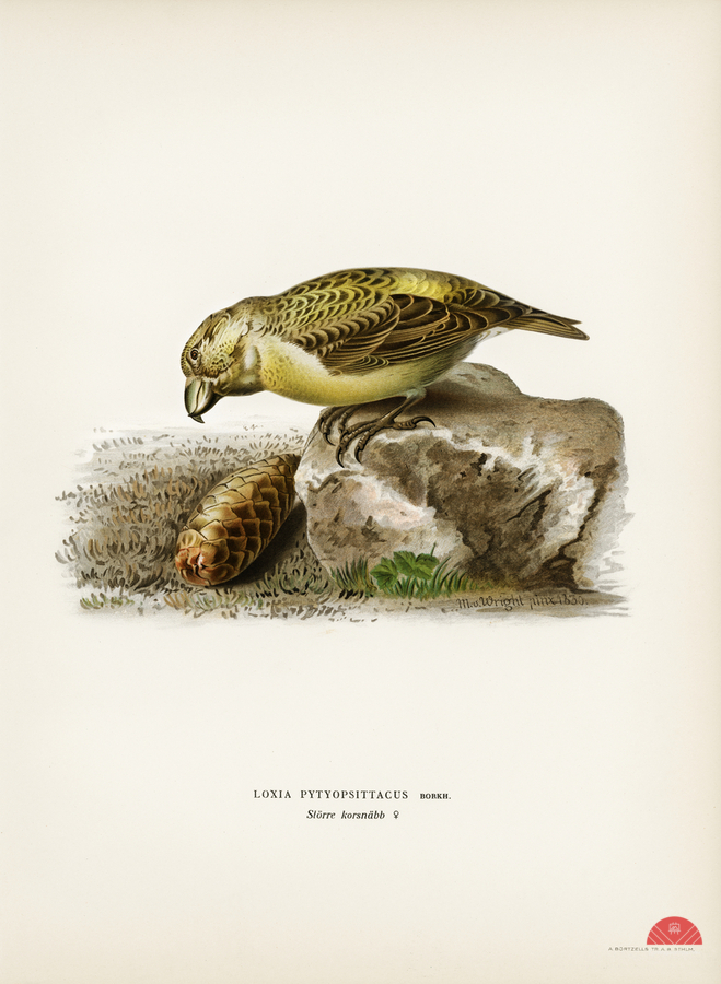 Parrot crossbill Loxia pytyopsittacus illustrated by Magnus von Wright 1905-1968. from 1929 folio version of Svenska Fåglar Efter Naturen Och Pa Sten...[+]
