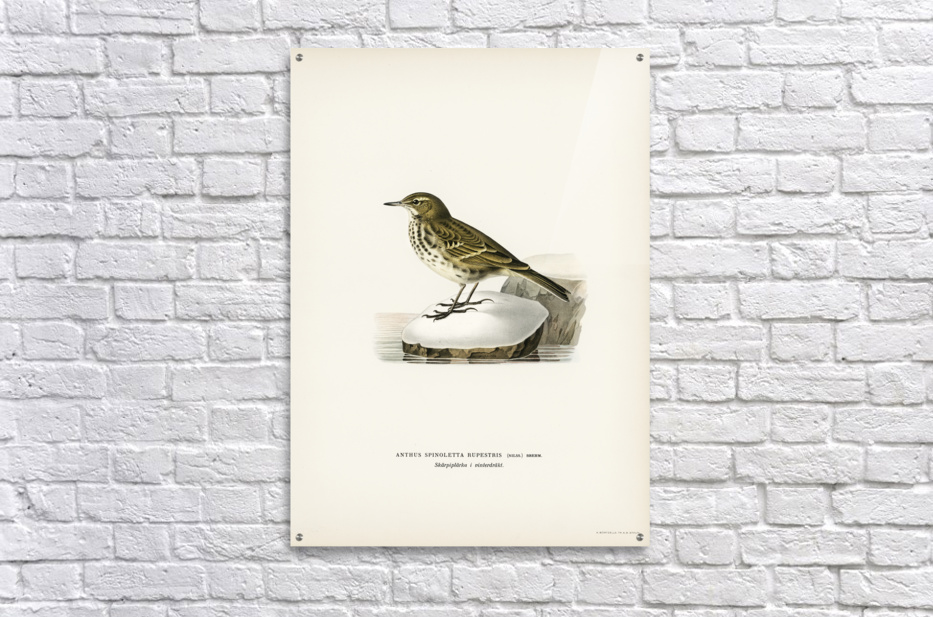Water pipit Anthus spinoletta rupestris illustrated by Magnus von Wright 1905-1968. from 1929 folio version of Svenska Fåglar Efter Naturen Och Pa St...[+]