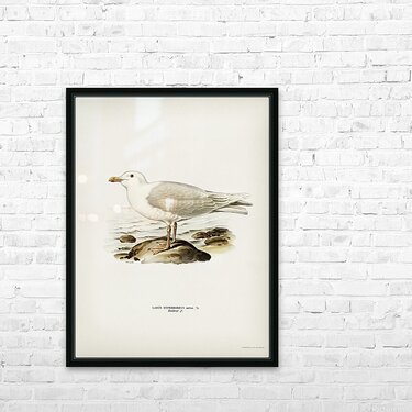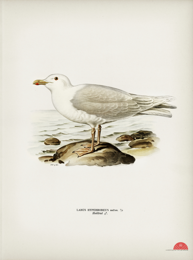 Glaucous gull ? Larus hyperboreus illustrated by Magnus von Wright 1905-1968. from 1929 folio version of Svenska Fåglar Efter Naturen Och Pa Sten Rit...[+]