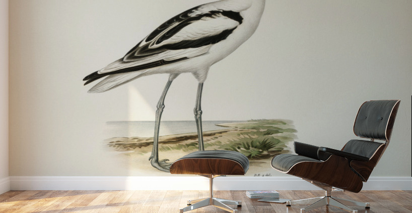 Pied avocet Recurvirostra avosetta illustrated by Magnus von Wright 1905-1968. from 1929 folio version of Svenska Fåglar Efter Naturen Och Pa Sten Ri...[+]