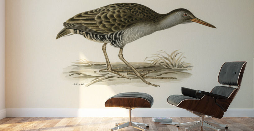Water rail Rallus aquaticus illustrated by Magnus von Wright 1905-1968. from 1929 folio version of Svenska Fåglar Efter Naturen Och Pa Sten Ritade.