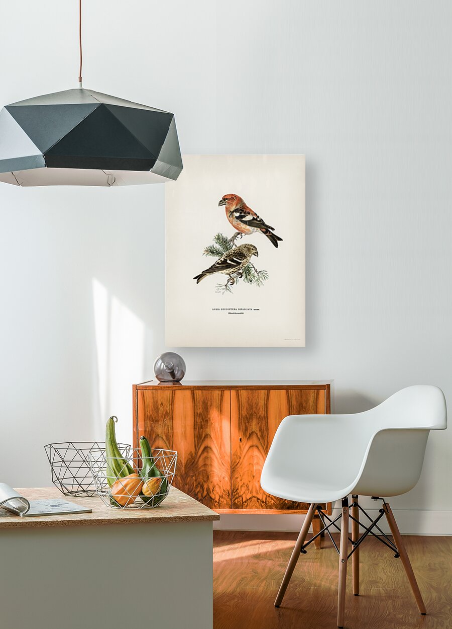 Get this artwork "Two-barred crossbill Loxia leucoptera bifasciata" in a framed print.