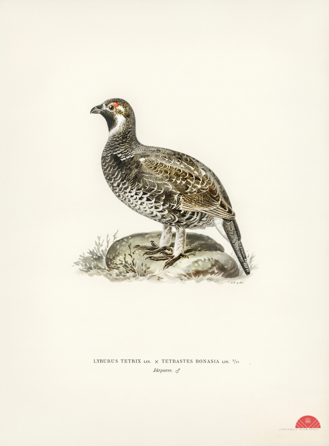 lyrurus tetrix tetrastes bonasia illustrated by Magnus von Wright 1905-1968. from 1929 folio version of Svenska Fåglar Efter Naturen Och Pa Sten Ritade.