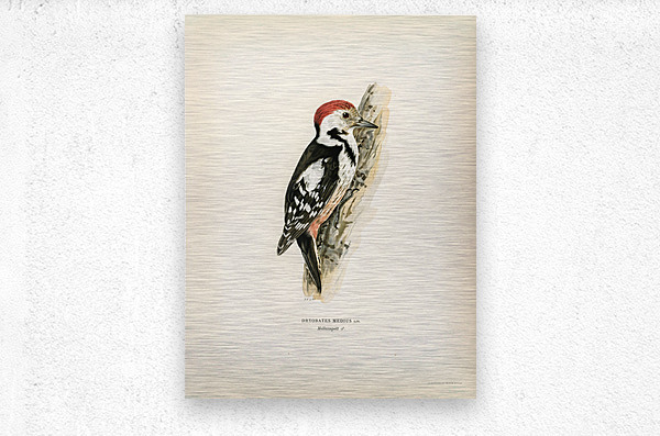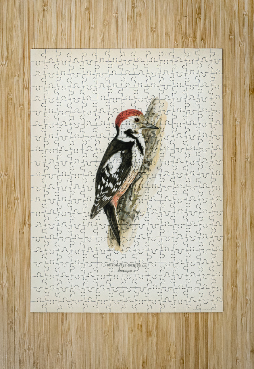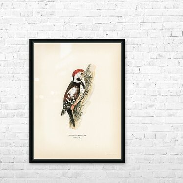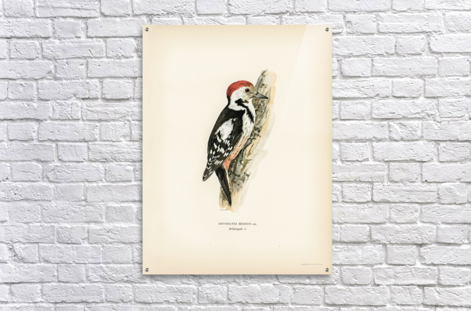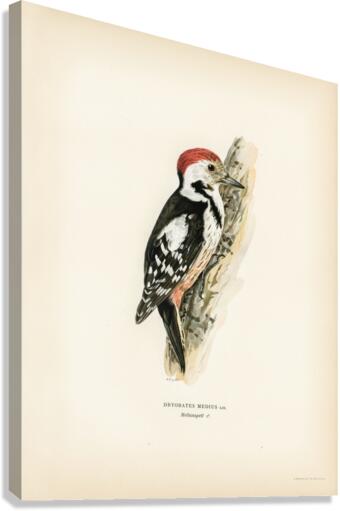 Dryobates medius illustrated by Magnus von Wright 1905-1968. from 1929 folio version of Svenska Fåglar Efter Naturen Och Pa Sten Ritade.