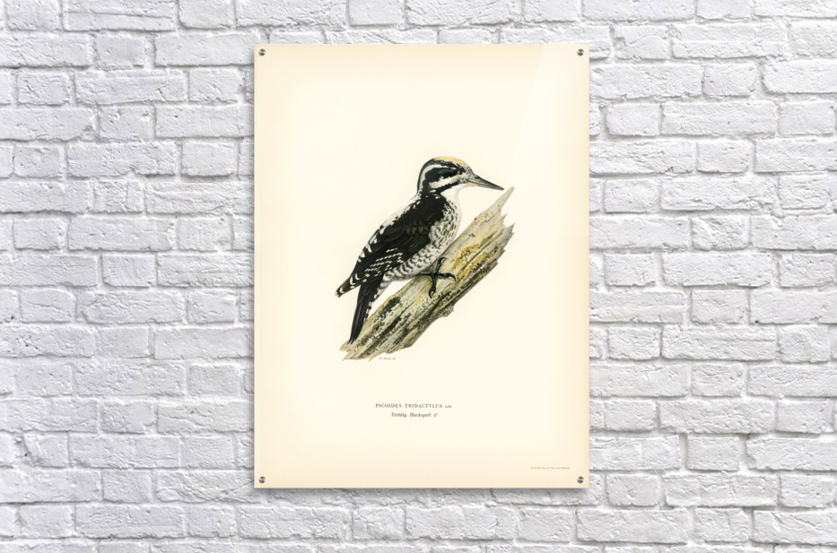 Three-toed woodpecker Picoides Tridactylu illustrated by Magnus von Wright 1905-1968. from 1929 folio version of Svenska Fåglar Efter Naturen Och Pa ...[+]