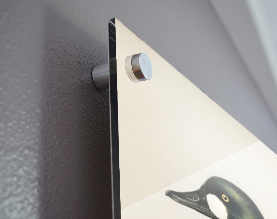 Printed to the edge - Ready to hang - provided with 4 premium polished aluminum stand off ( wall screws and mounting hardware provided ) We suggest a thicker 3/16" acrylic for any size over 42 inches to guarantee a straight acrylic, without curvature