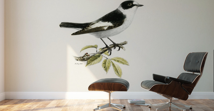 Collared flycatcher Muscicapa collaris illustrated by Magnus von Wright 1905-1968. from 1929 folio version of Svenska Fåglar Efter Naturen Och Pa Ste...[+]