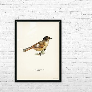 Siberian Jay Perisoreus infaustus illustrated by Magnus von Wright 1905-1968. from 1929 folio version of Svenska Fåglar Efter Naturen Och Pa Sten Rit...[+]