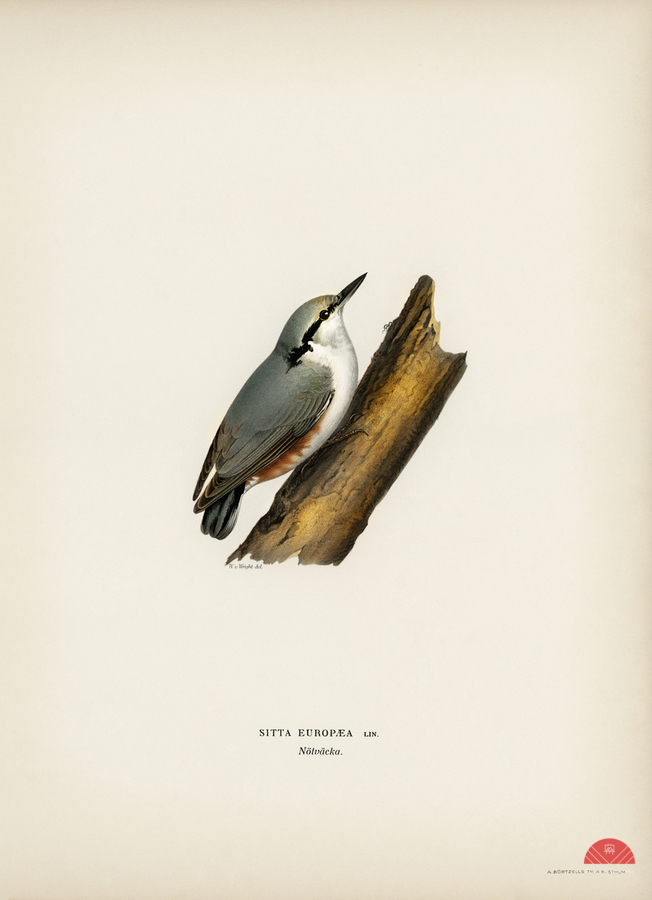 SITTA EUROPAEA LIN illustrated by Magnus von Wright 1905-1968. from 1929 folio version of Svenska Fåglar Efter Naturen Och Pa Sten Ritade.