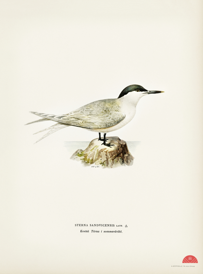Sandwich tern Sterna sandvicensis illustrated by Magnus von Wright 1905-1968. from 1929 folio version of Svenska Fåglar Efter Naturen Och Pa Sten Rit...[+]