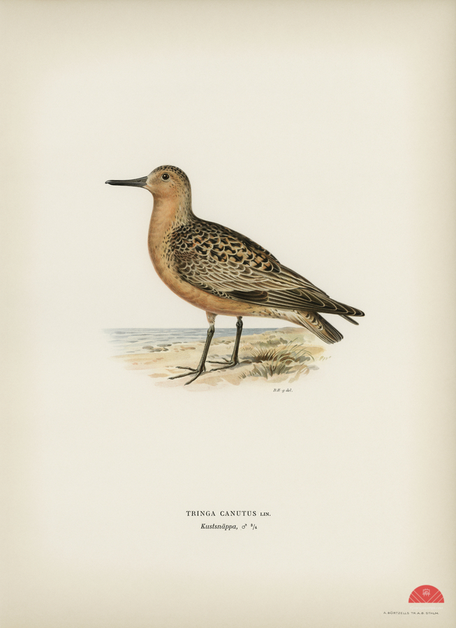 Red Knot ? Tringa Canutus illustrated by Magnus von Wright 1905-1968. from 1929 folio version of Svenska Fåglar Efter Naturen Och Pa Sten Ritade.