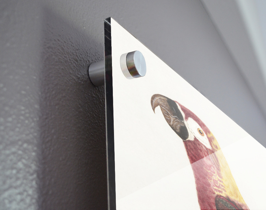 Printed to the edge - Ready to hang - provided with 4 premium polished aluminum stand off ( wall screws and mounting hardware provided ) We suggest a thicker 3/16" acrylic for any size over 42 inches to guarantee a straight acrylic, without curvature