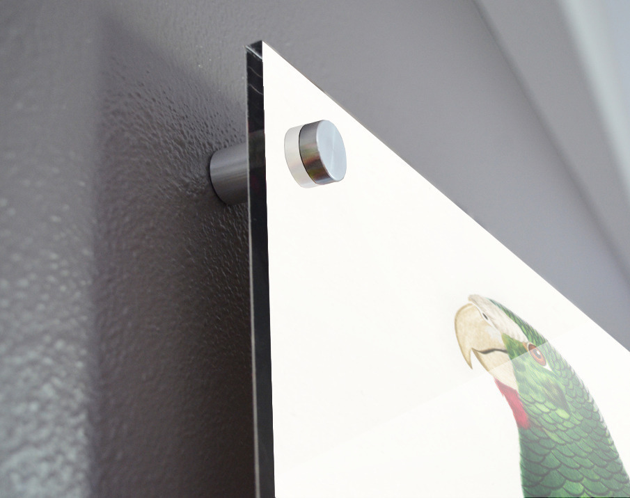 Printed to the edge - Ready to hang - provided with 4 premium polished aluminum stand off ( wall screws and mounting hardware provided ) We suggest a thicker 3/16" acrylic for any size over 42 inches to guarantee a straight acrylic, without curvature