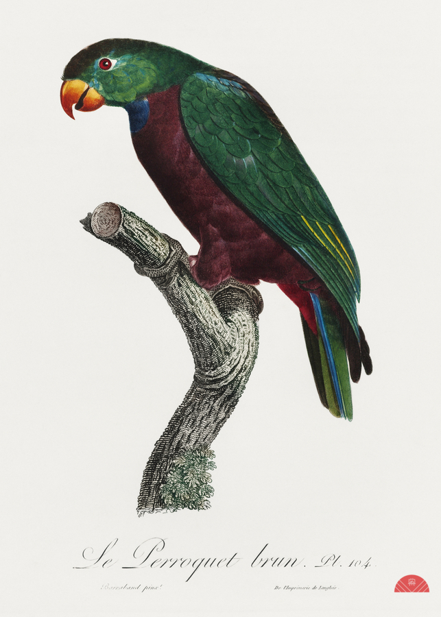 The Red-Billed Parrot Pionus sordidus from Natural History of Parrots 1801—1805 by Francois Levaillant.