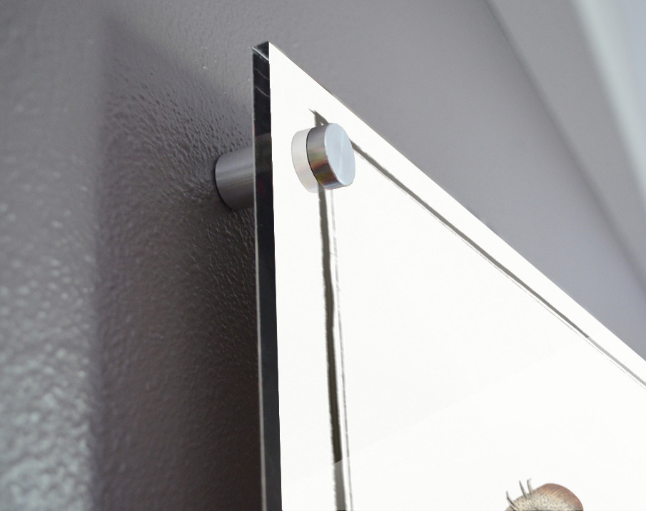 Printed to the edge - Ready to hang - provided with 4 premium polished aluminum stand off ( wall screws and mounting hardware provided ) We suggest a thicker 3/16" acrylic for any size over 42 inches to guarantee a straight acrylic, without curvature