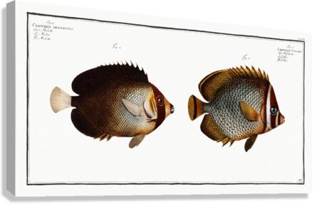 1. Collar Chaetodon Collare 2. Mulatto Chaetodon mesoleucus from Ichtylogie ou Histoire naturelle: génerale et particuliére des poissons 1785-1797 by Marcus Eliser 1723-1799