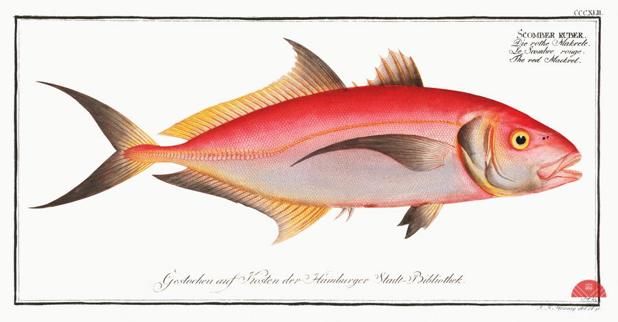 Red Mackrel Scomber ruber from Ichtylogie ou Histoire naturelle: génerale et particuliére des poissons 1785-1797 by Marcus Eliser 1723-1799