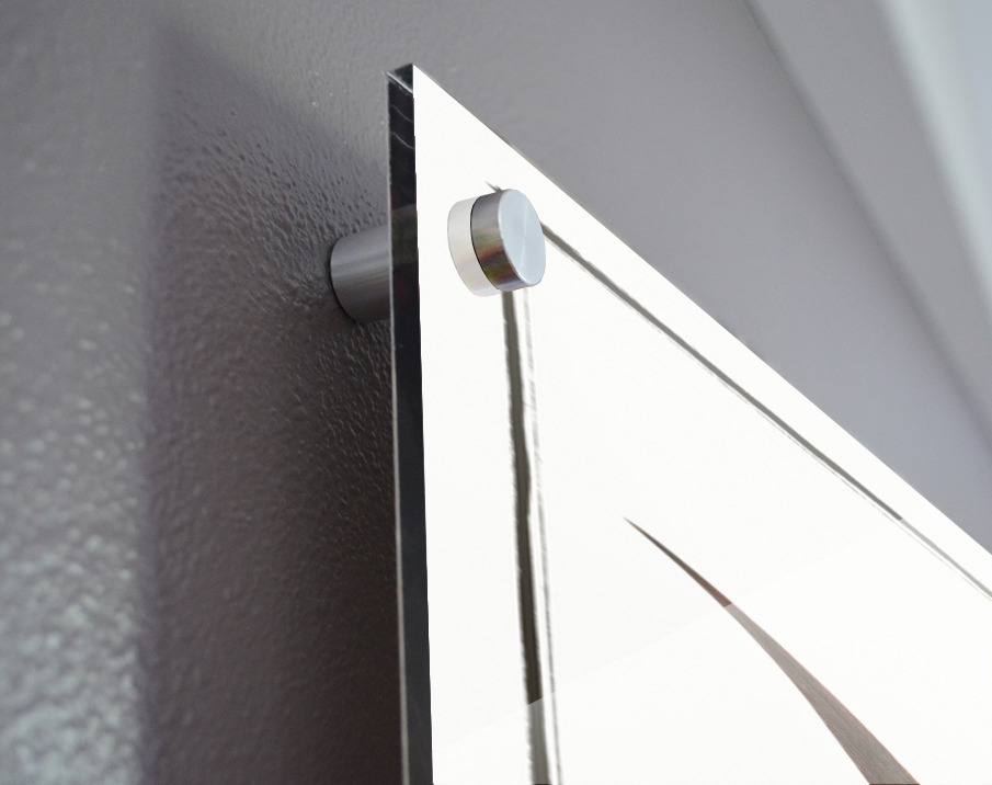 Printed to the edge - Ready to hang - provided with 4 premium polished aluminum stand off ( wall screws and mounting hardware provided ) We suggest a thicker 3/16" acrylic for any size over 42 inches to guarantee a straight acrylic, without curvature