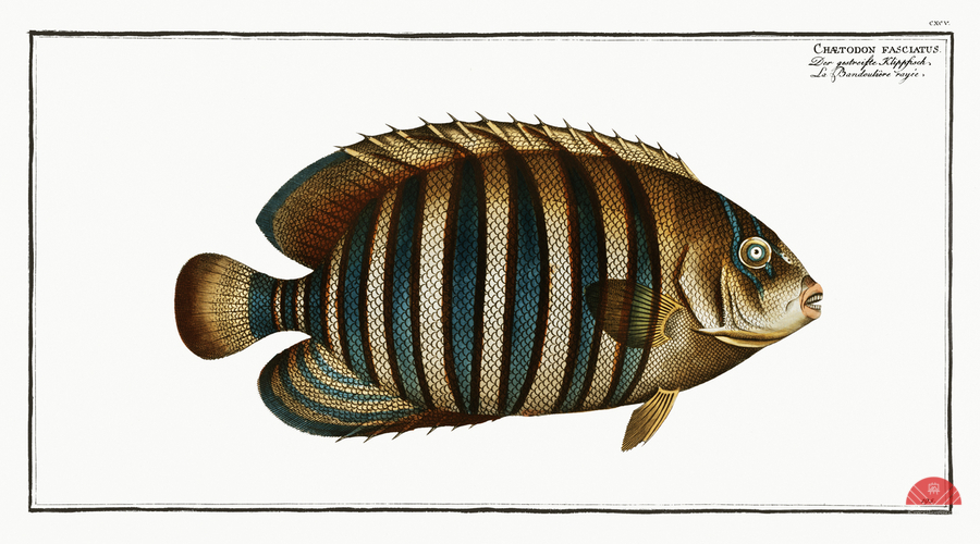 Chaetodon fasciatus from Ichtylogie ou Histoire naturelle: génerale et particuliére des poissons 1785-1797 by Marcus Eliser 1723-1799