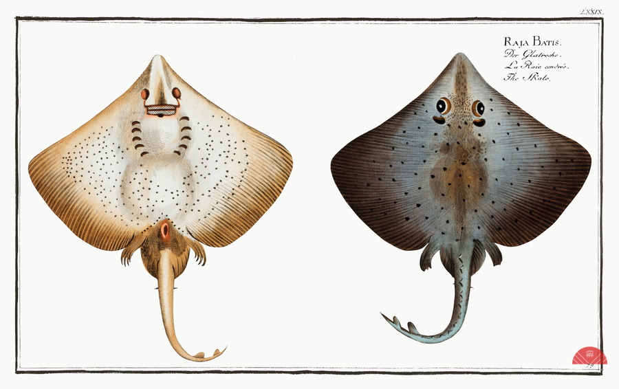 Skate Raja Batis from Ichtylogie ou Histoire naturelle: génerale et particuliére des poissons 1785-1797 by Marcus Eliser 1723-1799