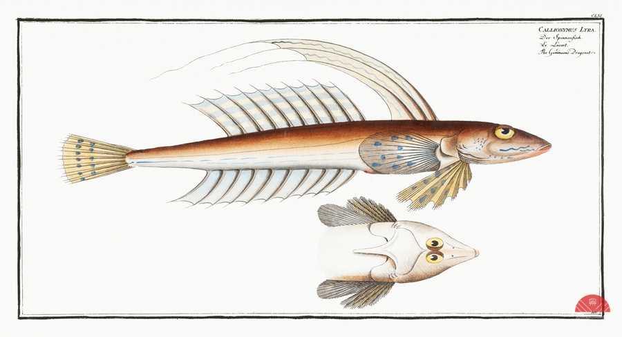 Gemmeous Dragonet Callionymus Lyra from Ichtylogie ou Histoire naturelle: génerale et particuliére des poissons 1785-1797 by Marcus Eliser 1723-1799