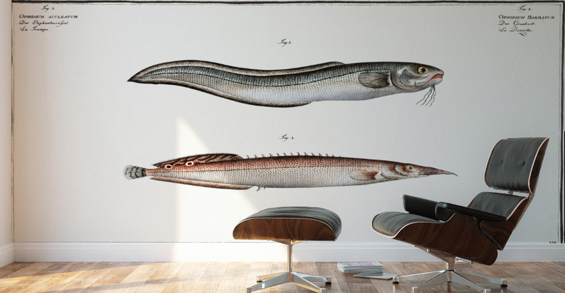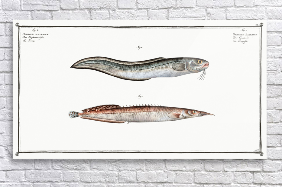 1. Ophidium Barbatum 2. Ophidium aculeatum from Ichtylogie ou Histoire naturelle: génerale et particuliére des poissons 1785-1797 by Marcus Eliser 1...[+]