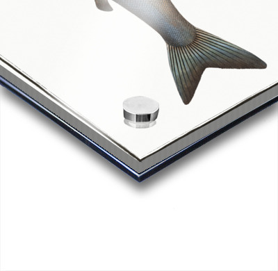 Printed to the edge - Ready to hang - provided with 4 premium polished aluminum stand off ( wall screws and mounting hardware provided ) We suggest a thicker 3/16" acrylic for any size over 42 inches to guarantee a straight acrylic, without curvature