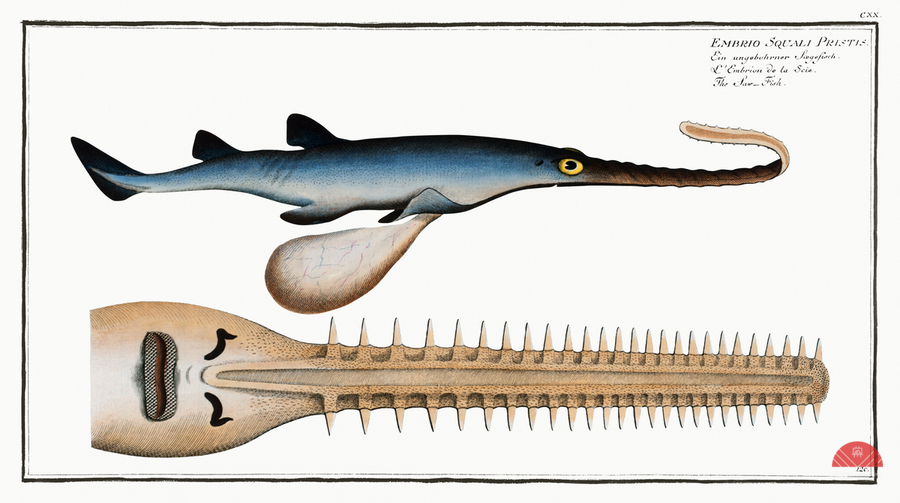 Saw-Fish Embrio Squali Pristis from Ichtylogie ou Histoire naturelle: génerale et particuliére des poissons 1785-1797 by Marcus Eliser 1723-1799