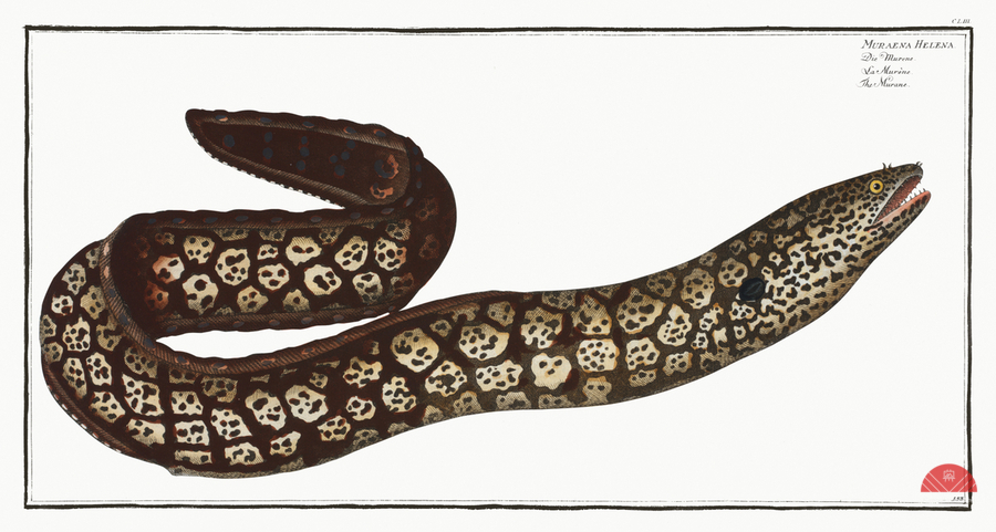 Murane Muraena Helena from Ichtylogie ou Histoire naturelle: génerale et particuliére des poissons 1785-1797 by Marcus Eliser 1723-1799