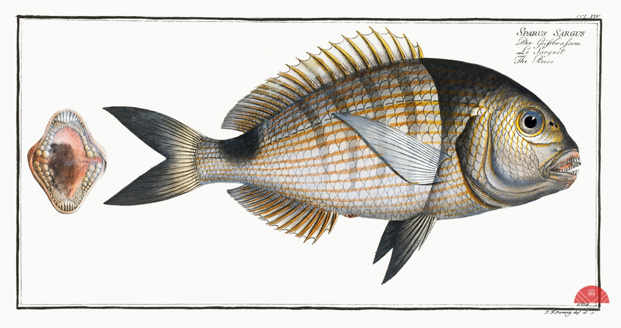 Base Sparus Sargus from Ichtylogie ou Histoire naturelle: génerale et particuliére des poissons 1785-1797 by Marcus Eliser 1723-1799