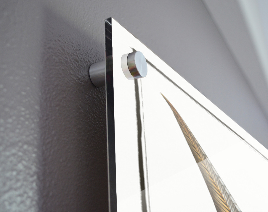 Printed to the edge - Ready to hang - provided with 4 premium polished aluminum stand off ( wall screws and mounting hardware provided ) We suggest a thicker 3/16" acrylic for any size over 42 inches to guarantee a straight acrylic, without curvature