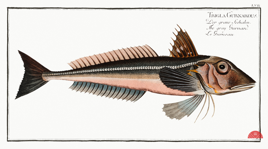 Grey Gurnard Trigla Gurnardus from Ichtylogie ou Histoire naturelle: génerale et particuliére des poissons 1785-1797 by Marcus Eliser 1723-1799