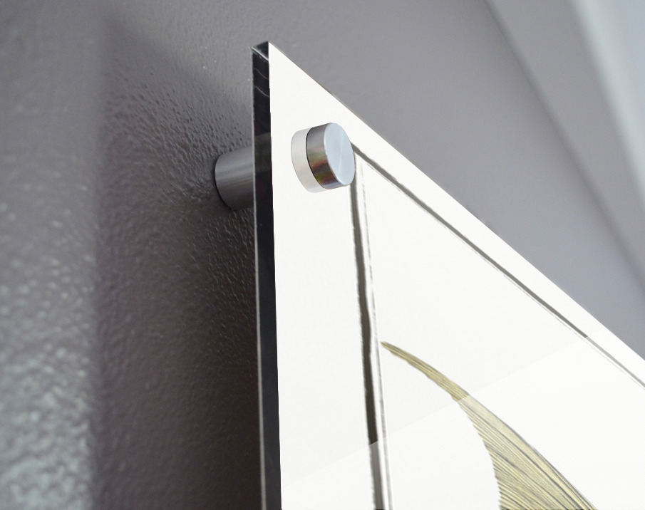Printed to the edge - Ready to hang - provided with 4 premium polished aluminum stand off ( wall screws and mounting hardware provided )