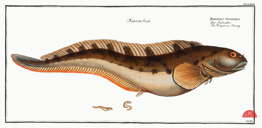 Viviparous Blenny Blennius Viviparus from Ichtylogie ou Histoire naturelle: génerale et particuliére des poissons 1785-1797 by Marcus Eliser 1723-17...[+]