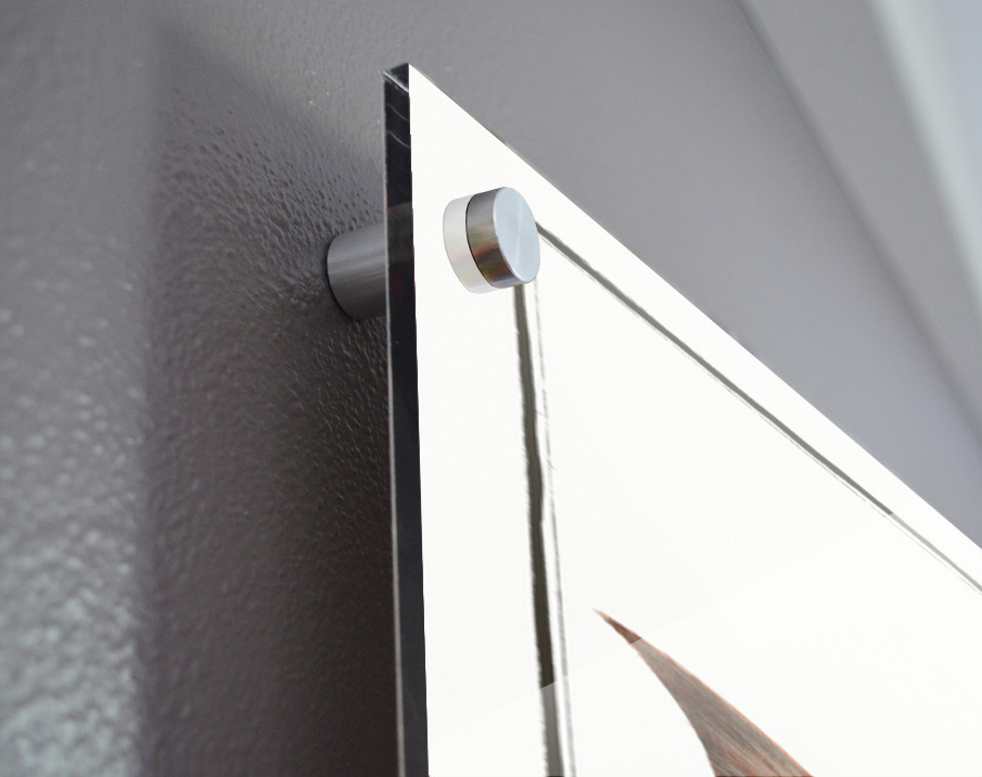 Printed to the edge - Ready to hang - provided with 4 premium polished aluminum stand off ( wall screws and mounting hardware provided ) We suggest a thicker 3/16" acrylic for any size over 42 inches to guarantee a straight acrylic, without curvature