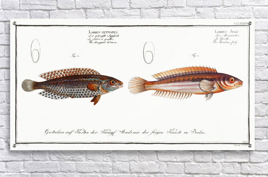 Get this artwork "1. Rainbow-fish Labrus Julis 2. Dropped Wrasse Labrus Guttatus" in a framed print.
