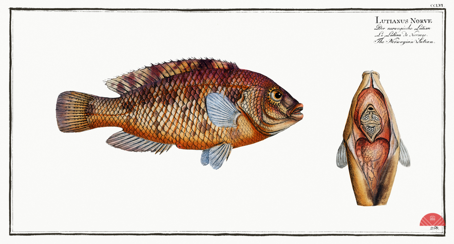 Norvegian Lutian Lutianus Norve from Ichtylogie ou Histoire naturelle: génerale et particuliére des poissons 1785-1797 by Marcus Eliser 1723-1799