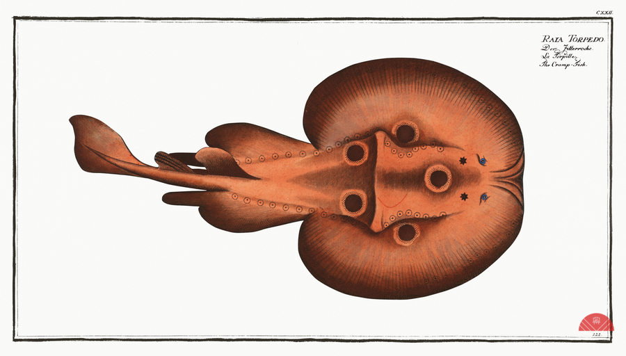 Cramp-Fish Raja Torpedo from Ichtylogie ou Histoire naturelle: génerale et particuliére des poissons 1785-1797 by Marcus Eliser 1723-1799