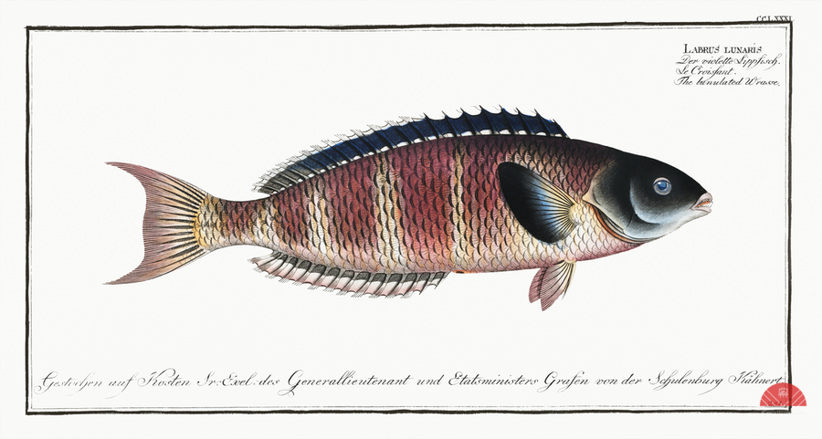 Lunulated Wrasse Labrus lunaris from Ichtylogie ou Histoire naturelle: génerale et particuliére des poissons 1785-1797 by Marcus Eliser 1723-1799